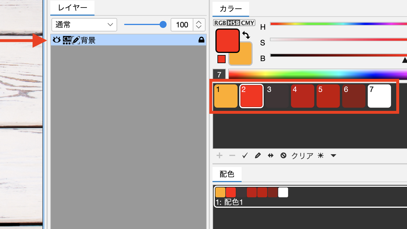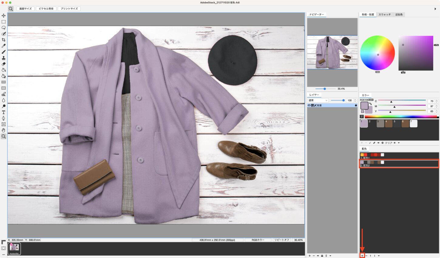 - メイン画面で配色パネルの配色を追加し、自由に色を変更してみましょう。