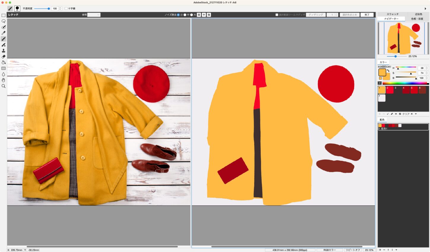 製品写真やジャガード生地、刺繍など、特定の色だけを変えたい時に便利なのがカラーマスクです。元のイメージの質を保ったまま、色味を統一したり、まったく違う色に変えたりすることができます。今回は、製品写真を使って、カラーマスクの修正方法から色の変更まで、具体的な手順を詳しく解説していきます。