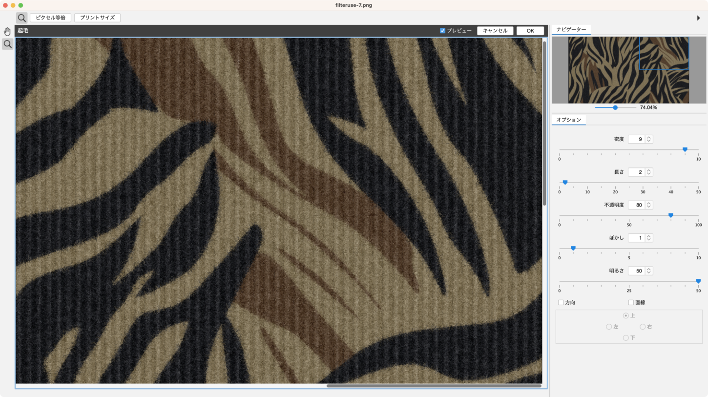 - 続けて、フィルターメニュー>起毛 を選択します。