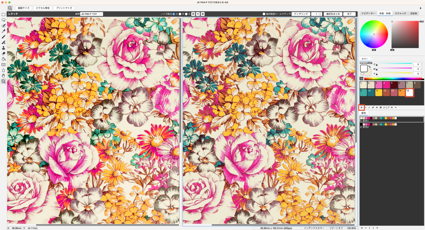 - 元図案と、色まとめ図案を開きます。