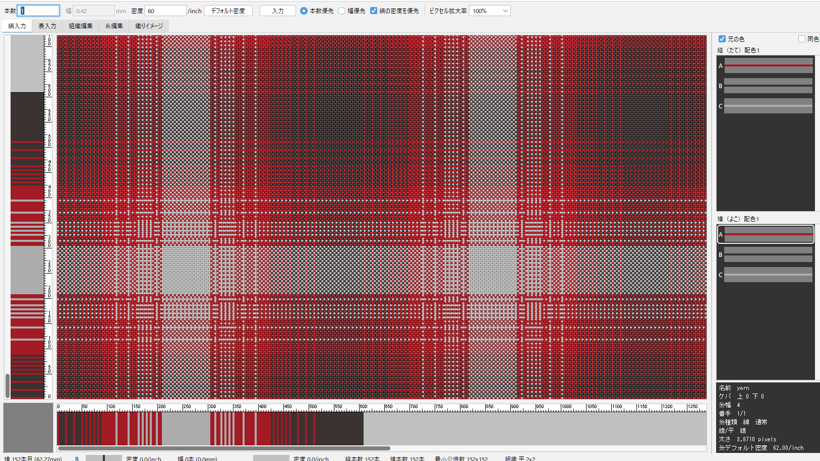 オンブレチェックの作成では、色の選び方と縞の配列が重要になります。