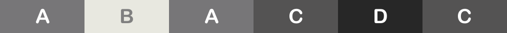 例(4色の場合):A→B→A→C→D→C→A…のように、AとB、CとDのグラデーションを作り、中間色であるAとCでそれらを繋げるように意識して配列します。