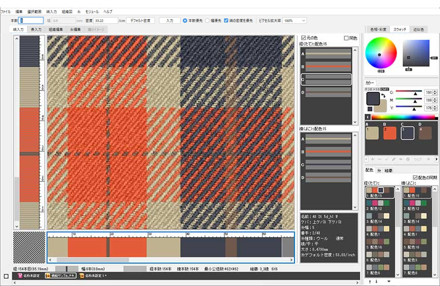オンブレチェックの作成では、色の選び方と縞の配列が重要になります。