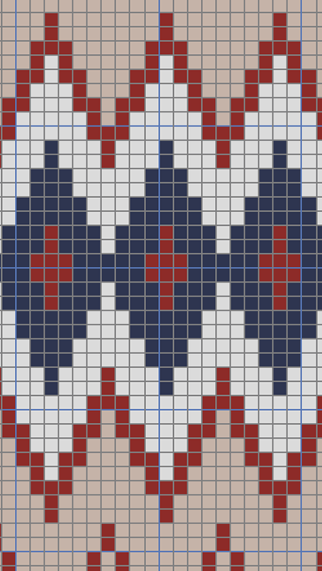 準備したデザインデータをモザイク(グラフ)データに変換します。変換後には、レタッチ機能を用いた細やかな修正が可能です。また、インデックスカラーのBMPデータとして書き出すことができます。 - 編み上げイメージの作成: