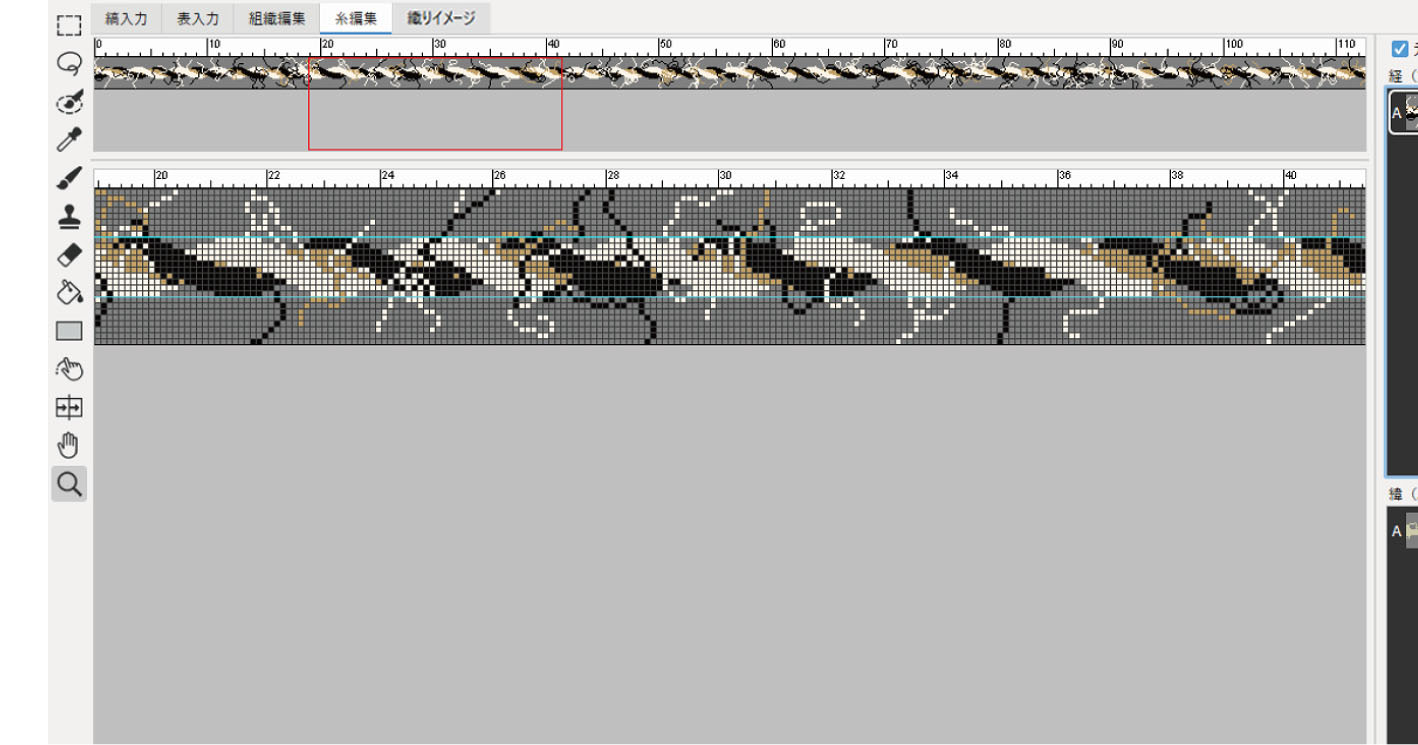 番手変更は、番手表から変更したい番手を選択するのみで、糸のデザインを保ったまま糸幅が自動調整されます。